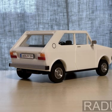 This is one of my favourite projects, because I could combine CAD with designing cars. This 1:20 scale Polo helped me gain more confidence with CAD software and design more complex parts with manufacturing in mind. Optimising material usage and time was crucial. The design stage (on paper) and translation stage into CAD took around 10 days, after which the printing took place. Very happy to have used CAD for more complex shapes and getting for a final result.